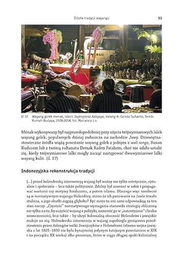 We współczesnym jawajskim teatrze cieni, określanym mianem wayang kontemporer, o którym opowiada ta książka, ponad tysiącletnia tradycja współistnieje z innowacjami wprowadzanymi do przedstawień w ostatnich dekadach. Równie dużym zainteresowaniem cieszą się występy najlepszych lalkarzy, znanych z telewizji czy internetu, jak i twórców eksperymentujących, łamiących zasady i wykraczających poza tradycyjne rozumienie teatru cieni.